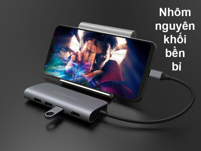 Hyperdrive Power 9-in-1 có lớp vỏ được làm từ chất liệu Aluminum CNC nguyên khối cao cấp. Sang trọng và bền bỉ, không gỉ sét. Kích thước rất nhỏ gọn, nằm trọn trong lòng bàn tay, không chiếm không gian, thể dễ dàng cất giữ trong balo, túi xách.