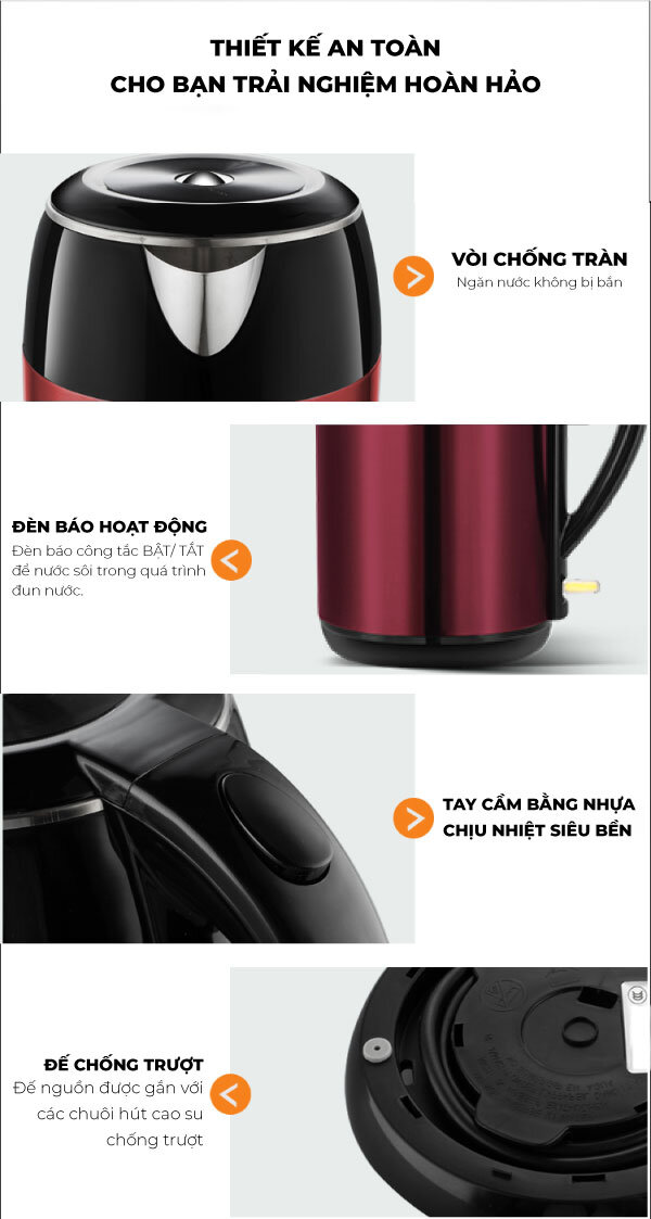 Đèn LED tự động báo hiệu bật/tắt Đèn sáng đỏ từ khi bắt đầu cho đến khi kết thúc quá trình đun sôi nước, giúp người sử dụng dễ dàng nhận biết nước đã sôi hay chưa mà không cần mở nắp.