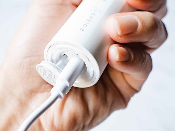 Bàn chải đánh răng điện âm của EPEIOS được trang bị viên pin dung lượng lớn 2200mAh, sạc nhanh trong 4 giờ, có thể sử dụng trong 180 ngày chỉ với một lần sạc. ET003 có cổng sạc là Type-C, vì vậy bạn cũng có thể sử dụng bộ sạc của điện thoại di động để sạc bàn chải đánh răng điện.