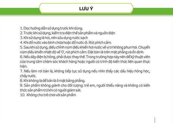 2. Thông số kỹ thuật • Điện áp: 230V/50Hz • Công suất 1.200W • Nhiệt độ: 150-220oC • Mặt là: 177.5cm2 • Dung tích bình chứa nước: 150ml • Công suất phun sương: 10-20g/min • Kích thước:252x97x125(mm), dây điện: 1.5m 3. Hướng dẫn sử dụng Bàn là hơi nước Kangaroo