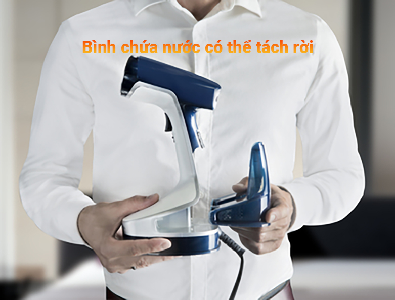 Ngoài ra, bàn ủi hơi nước cầm tay dạng du lịch Tefal DT8100E0 còn có thể tách rời được bình chứa nước một cách hiện đại, giúp người dùng dễ dàng thêm nước, làm vệ sinh máy và lắp lại khi có nhu cầu sử dụng, đồng thời còn giúp bạn ủi được nhiều quần áo hơn trong một lần sử dụng.