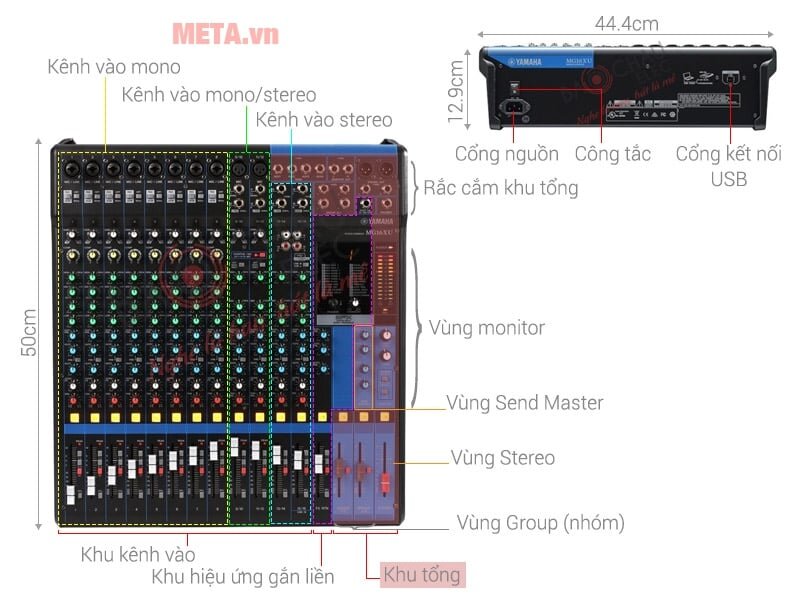 Sản phẩm bàn mixer Yamaha Mg16Xu được hãng Yamaha trang bị và bố trí các cổng kết nối thiết bị âm thanh một cách logic, các núm xoay điều chỉnh cho người dùng dễ dàng điều chỉnh và tương tác, cùng với đó là các tín hiệu thông qua hệ thống đèn LED báo hiệu chế độ hoạt động của bàn mixer, giúp bạn nhận biết được tình trạng hoạt động.