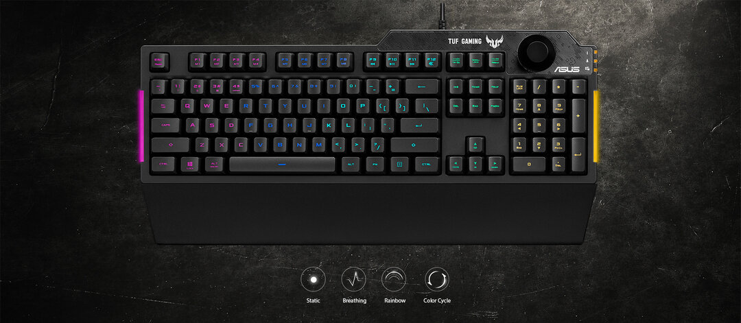 Với núm chỉnh âm lượng chuyên dụng ở góc trên bên phải, TUF Gaming K1 giúp bạn điều khiển âm thanh trong game một cách nhanh chóng và dễ dàng. Bạn có thể dễ dàng vặn núm mà vẫn bám sát từng hành động trên màn hình.