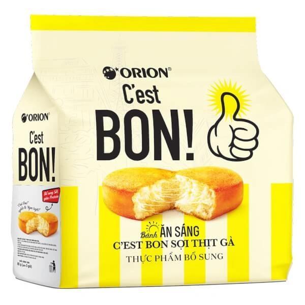 Bánh ăn sáng sợi thịt gà Orion C'est Bon là sự lựa chọn hoàn hảo cho bữa ăn sáng hàng ngày của cả nhà. Lớp bánh bông lan mềm mịn, béo thơm hoà quyện cùng những sợi thịt gà đậm đà sẽ giúp kích thích vị giác hiệu quả.