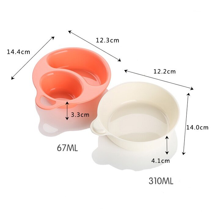 Công dụng: bát ăn dặm cho bé, gồm 2 ngăn, có thể sử dụng trong lò vi sóng