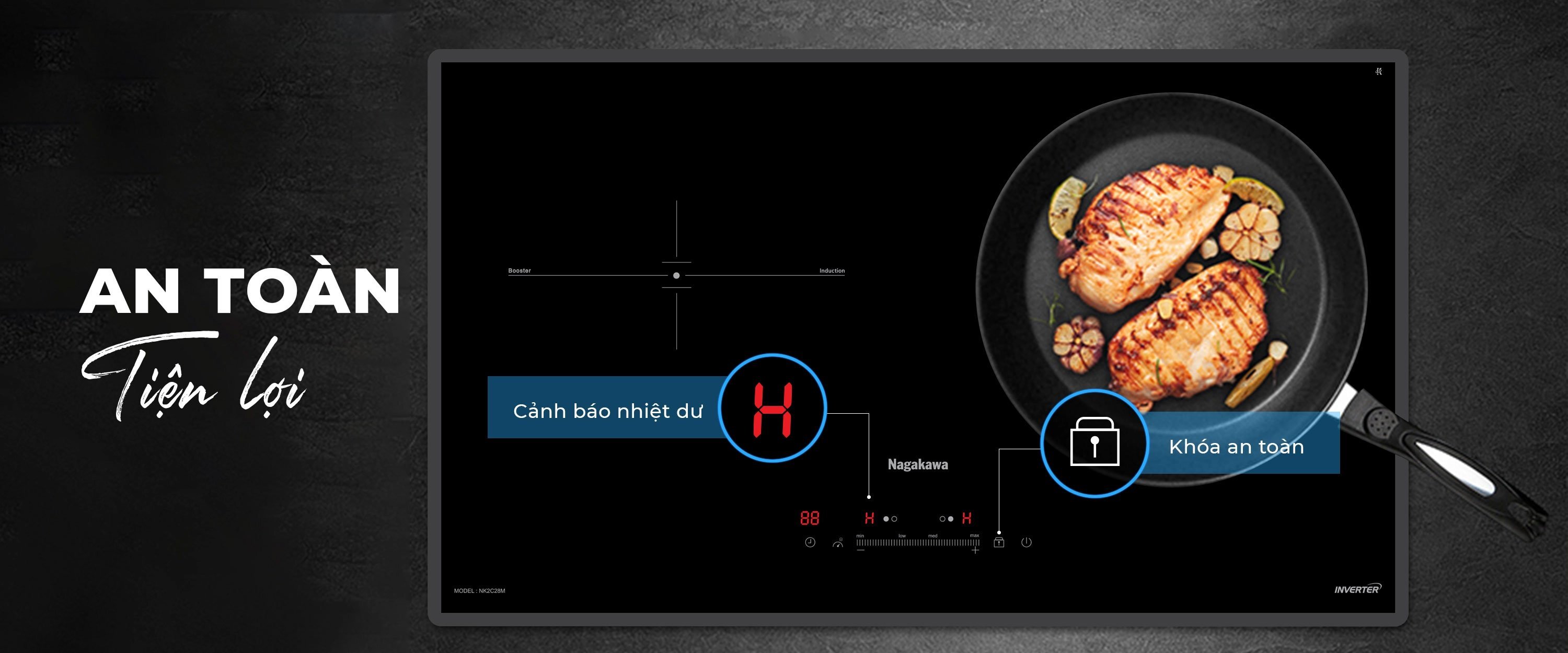 Bếp đôi điện từ Nagakawa UltraSlim NK2C28M gồm rất nhiều tính năng an toàn: Khóa an toàn, công nghệ chống nhiệt lan tỏa, cảm ứng quá nhiệt, dừng hoạt động khi đồ ăn tràn xuống mắt bếp, chức năng cảnh báo nhiệt dư, tự động tắt bếp khi không sử dụng, công nghệ kiểm soát nhiệt độ bảo vệ thiết bị bếp,... . giúp bạn yên tâm nấu nướng.