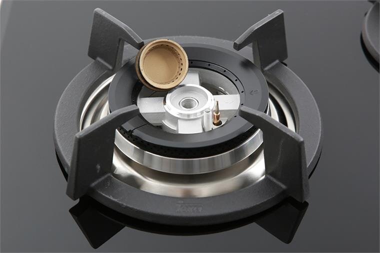 Chất liệu đầu đốt pha trộn giữa nhôm và đồng, tích hợp ưu điểm của cả 2 chất liệu: nhôm dẫn nhiệt nhanh, truyền nhiệt hiệu quả; đồng ít bị ăn mòn dưới nhiệt độ cao, nấu ngọn lửa xanh tiết kiệm gas không làm đen đáy nồi chảo.