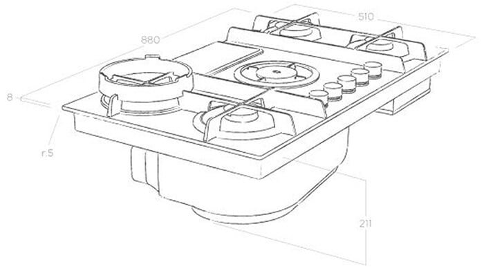Thông số kỹ thuật của bếp gas kết hợp hút mùi Elica NikolaTesla Flame
