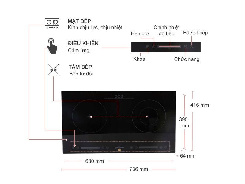 Bếp từ hồng ngoại Goldsun GDX7640 thiết kế trang nhã, an toàn khi sử dụng