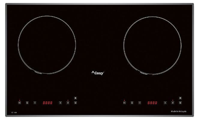 Sản phẩm bếp điện từ 2 vùng nấu Canzy CZ-66B mang trong mình tính năng tự động ngắt khi không có nồi, có khả năng tự nhận diện vùng nấu tránh thất thoát nhiệt năng khi sử dụng. Đặc biệt tính năng tự động ngắt khi nước tràn lên bàn phím đảm bảo hoạt động ổn định trên sản phẩm của người dùng.