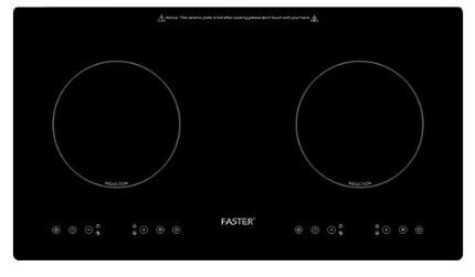 Bếp từ đôi Faster FS 216I với thiết kế siêu mỏng, bề mặt bếp màu đen, dày 8mm kết hợp với những đường kẻ định vị nồi tinh tế, bắt mắt. Thiết bị sẽ đem lại vẻ sang trọng và tinh tế cho không gian căn bếp ngôi nhà bạn.