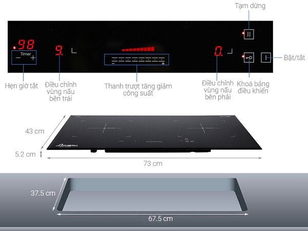 APB9981 có 2 vùng nấu rộng rãi giúp bạn chế biến được nhiều món ăn cùng lúc. Bạn có thể vừa nấu canh, vừa chiên xào thực phẩm một cách thật thoải mái.