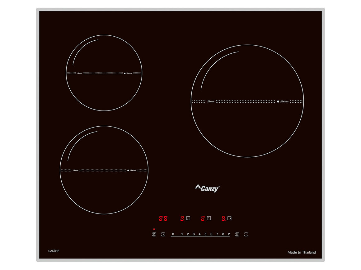 Bếp điện từ Canzy CZ 67HP gồm 3 vùng nấu với 1 vùng nấu lớn với công suất 2400W, 1 vùng nấu trung với công suất 2200W và 1 vùng nấu nhỏ với công suất 1800W. Chức năng Booster nấu siêu nhanh, tuy nhiên thời gian tối đa mặc định dùng chức năng này là 10 phút / lần tránh quá tải. Bếp được trang bị với công nghệ inverter thông minh vượt trội giúp làm giảm lượng tiêu thụ điện của các thiết bị có sử dụng lõi từ của bếp từ.