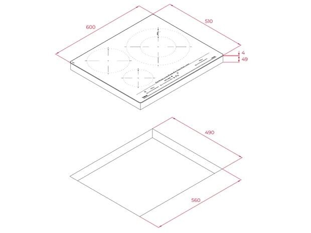 có thiết kế âm tường với mặt kính Quartzium chịu nhiệt, vát cạnh phía trước sẽ mang lại vẻ ngoài sang trọng và dễ dàng vệ sinh. Kích thước bếp là 600mm chiều rộng, 510mm chiều sâu và 53mm chiều cao phù hợp với nhiều không gian bếp hiện đại. Trọng lượng 10.7kg giúp bếp chắc chắn và dễ dàng lắp đặt.