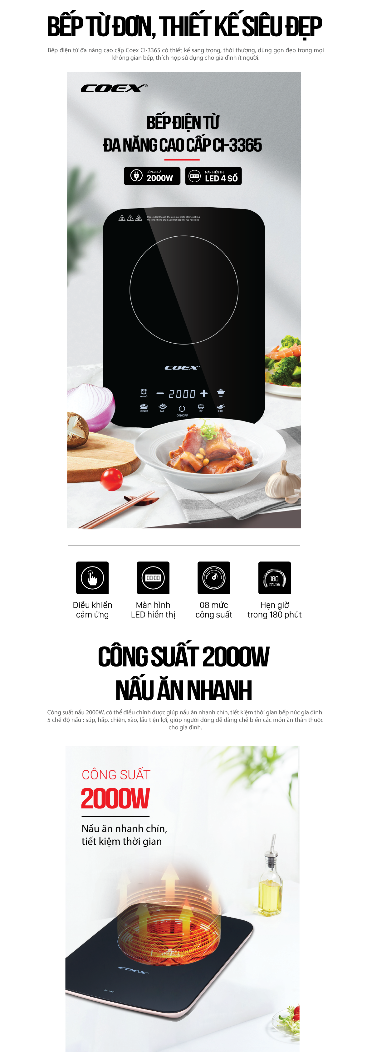 Bếp từ đơn Junger CEJ-105-I mang đến trải nghiệm nấu nướng tiện nghi, nhanh chóng