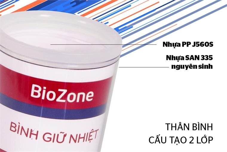 Bình giữ nhiệt BioZone dùng được với cả đồ uống nóng và lạnh. Cấu tạo 2 lớp nhựa cách nhau bởi 1 lớp không khí ở giữa nên bình có khả năng cách nhiệt tốt, giữ nhiệt lâu, lên tới 2 giờ.
