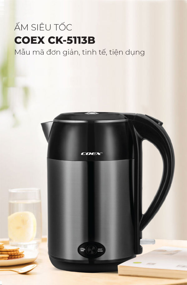 Ấm siêu tốc là sản phẩm tiện lợi không thể thiếu tại các gia đình hiện nay. Chỉ trong vài phút, bạn đã có được nước nóng để sử dụng trong sinh hoạt hàng ngày như pha trà, cafe, hãm mì,... Đặc biệt, với những gia đình có trẻ nhỏ, sản phẩm càng trở nên hữu ích những khi bạn cần pha sữa, nấu cháo. Hơn nữa, bạn có thể đun một chút nước đủ dùng thay vì phải đun nhiều nước như kiểu ấm điện truyền thống. Đây cũng chính là một trong những ưu điểm vượt trội của ấm siêu tốc COEX nói chung và sản phẩm ấm siêu tốc COEX CK-5113B nói riêng.