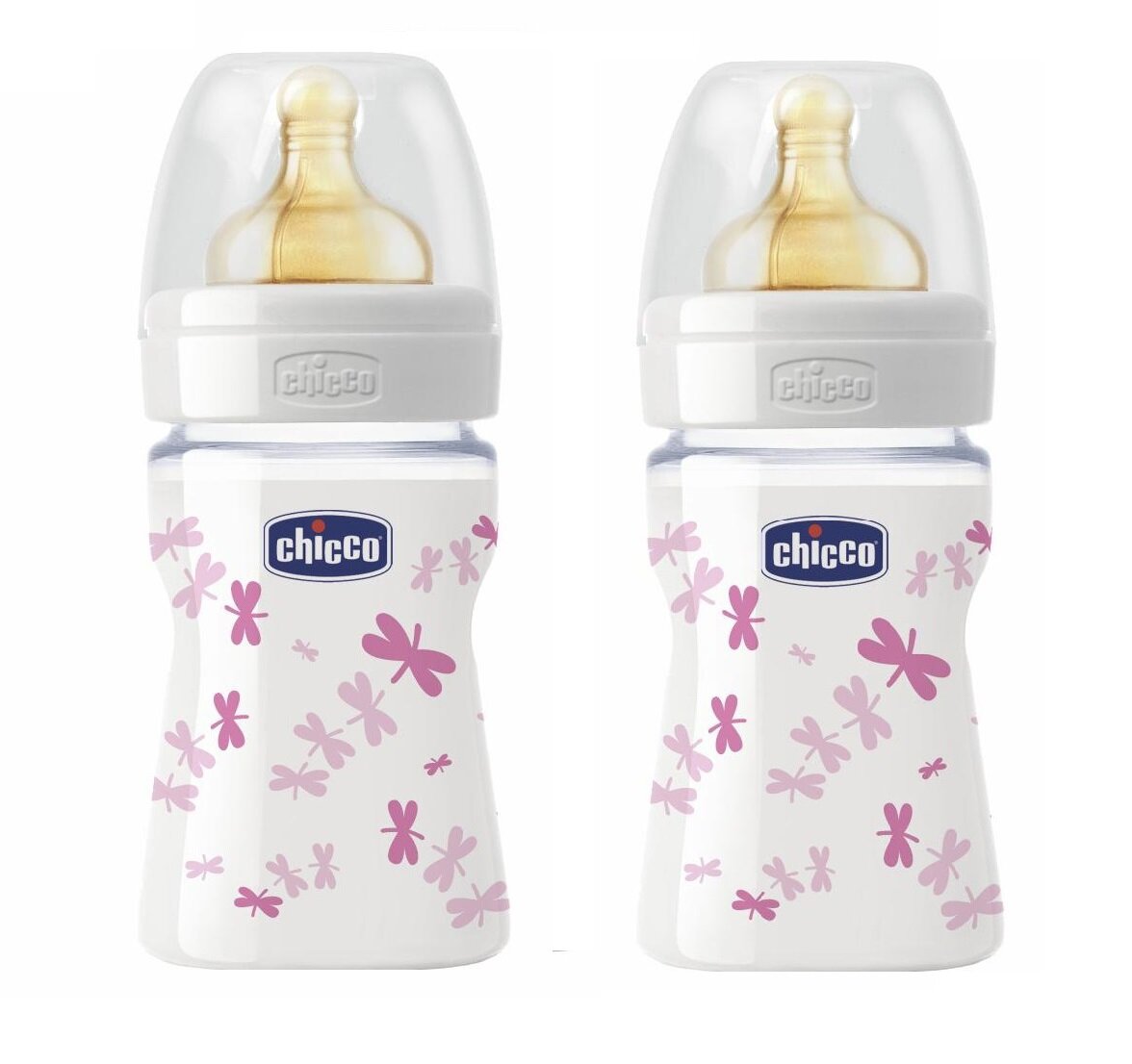Bình Sữa Thủy Tinh Chicco Núm Silicone Chuồn Chuồn Hồng 150ml