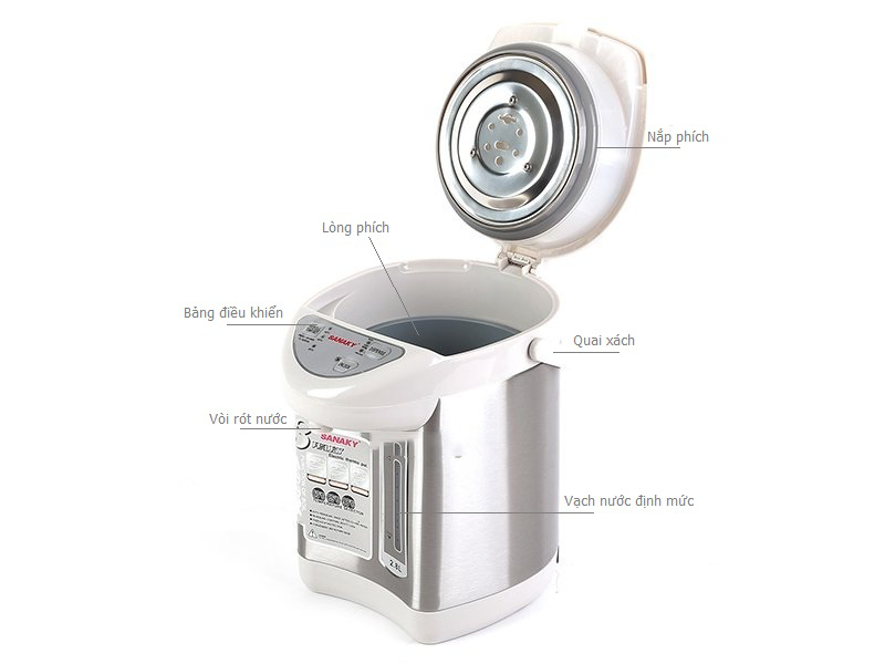 Đặc điểm chung của phích điện Sanaky AT-28N - Phích điện Sanaky AT-28N có kiểu dáng gọn nhỏ, đẹp mắt, màu trắng xám đơn giản tạo nên nét trẻ trung, hiện đại cho không gian nhà bạn. - Thân và lòng phích được làm hoàn toàn bằng chất liệu thép cao cấp, có độ bền cao, không gỉ sét, bảo đảm độ sáng bóng trong thời gian dài sử dụng và giữ an toàn sức khỏe cho người dùng. - Nắp phích có công tắc mở nắp ngay trên tay cầm sử dụng dễ dàng. Bên ngoài bình còn có thanh báo mực nước và đèn chỉ thị cho phép bạn quan sát mực nước ở trong phích mà không cần mở nắp. - Phích điện Sanaky AT-28N được thiết kế tay cầm bằng nhựa chịu nhiệt nên người sử dụng có thể di chuyển phích hay rót nước mà không lo bị bỏng.