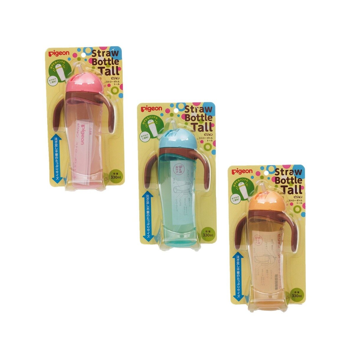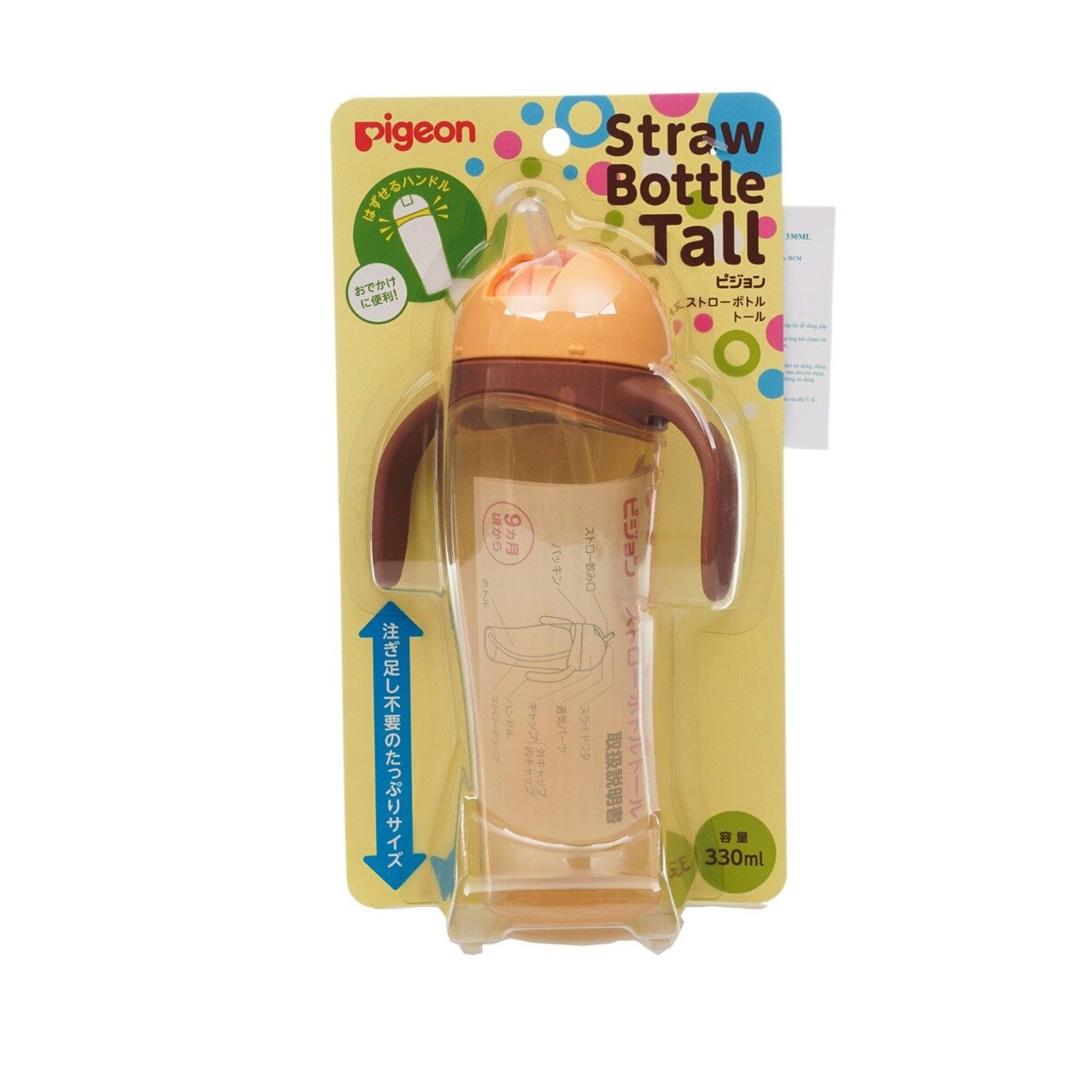 Bình Nước Tay Cầm - Ống Hút Pigeon 330ml
