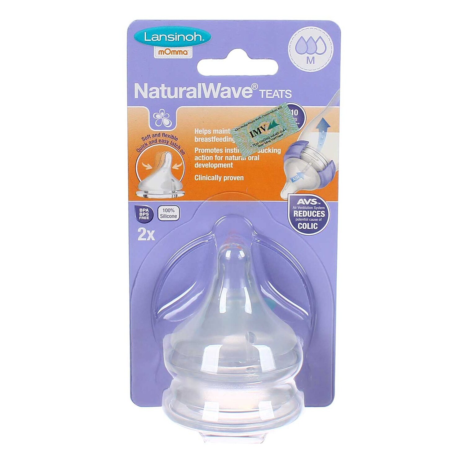 Đặc biệt, hệ thống thông gió không khí (AVS) trên núm ty Lansinoh trên bình sẽ làm giảm lượng không khí, loại bỏ nguyên nhân gây đau bụng cho bé.