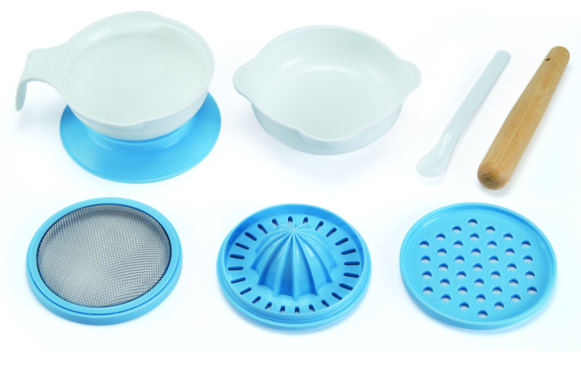 - Dụng cụ vắt trái cây, bát ăn, thìa nhựa, đũa cho mẹ sự tiện lợi khi sử dụng.