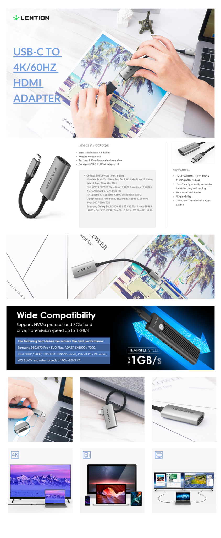Plug and Play - Không cần trình điều khiển / phần mềm. Hỗ trợ chế độ nhân bản và mở rộng của MacOS, WinOS, ChromeOS. Tương thích với iPad Pro 11 / 12.9 Mới (Chế độ mở rộng dành cho máy tính để bàn có thể khả dụng khi sử dụng Adobe Lightroom và một số ứng dụng hiện hành khác.)