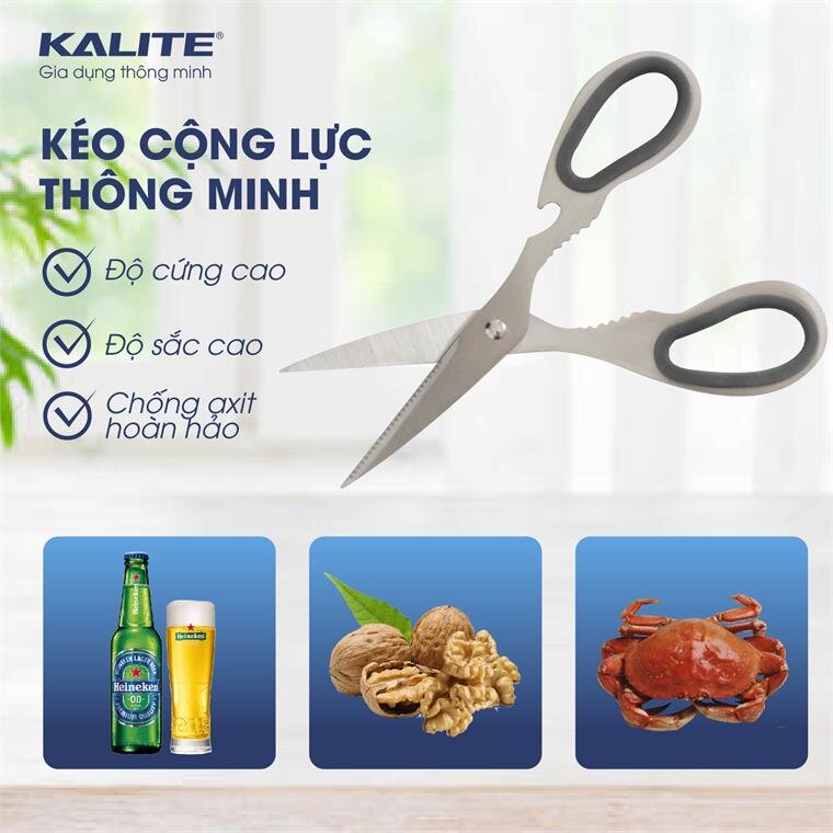 Bộ dao cao cấp Kalite 191 còn trang bị thêm kéo chịu lực thông minh có thể cắt xương gà, xương vịt, cắt mọi loại thực phẩm một cách dễ dàng nhất.