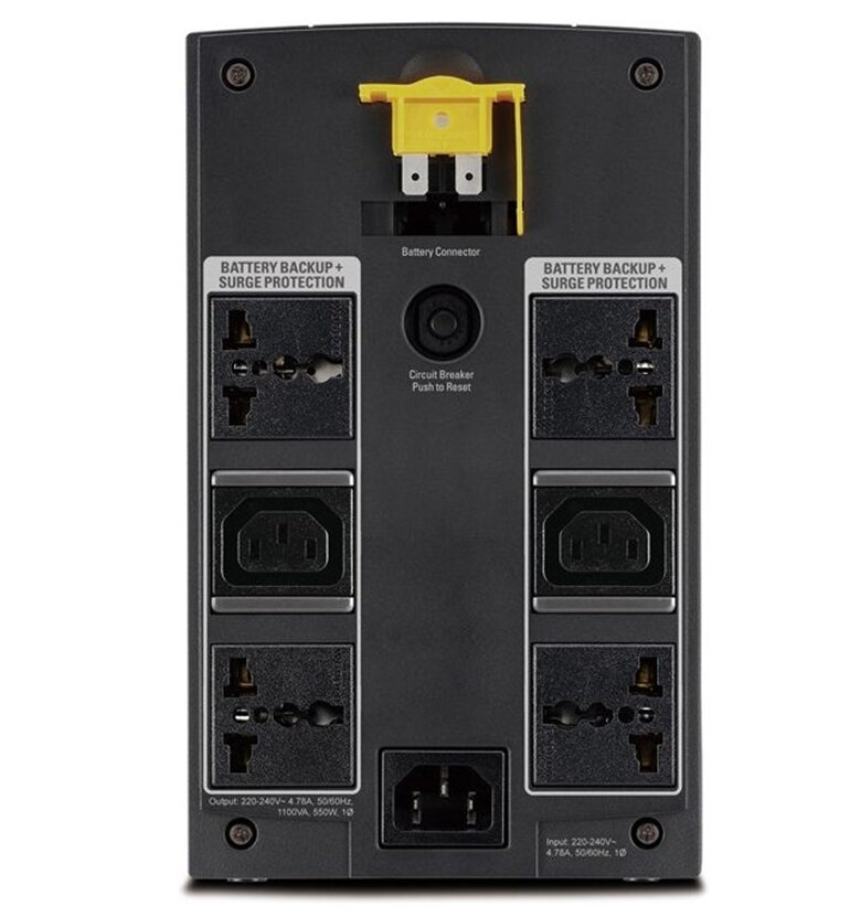– UPS APC BX1100LI-MS có khả năng lưu trữ điện 550W giúp duy trì nguồn điện cho các thiết bị khi gặp tình trạng cúp điện đội ngột đảm bảo cung cấp điện năng hoạt động.