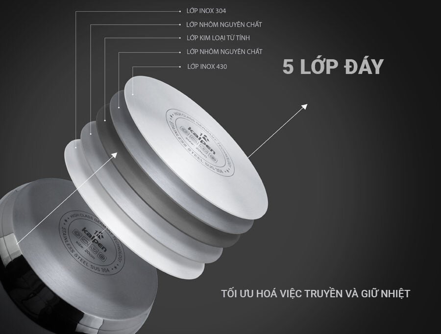inox Kalpen dày tới 5 lớp đáy giúp nồi truyền nhiệt đều và nhanh chóng sẽ hỗ trợ chị em nấu ăn nhanh hơn, tiết kiệm thời gian đứng bếp.