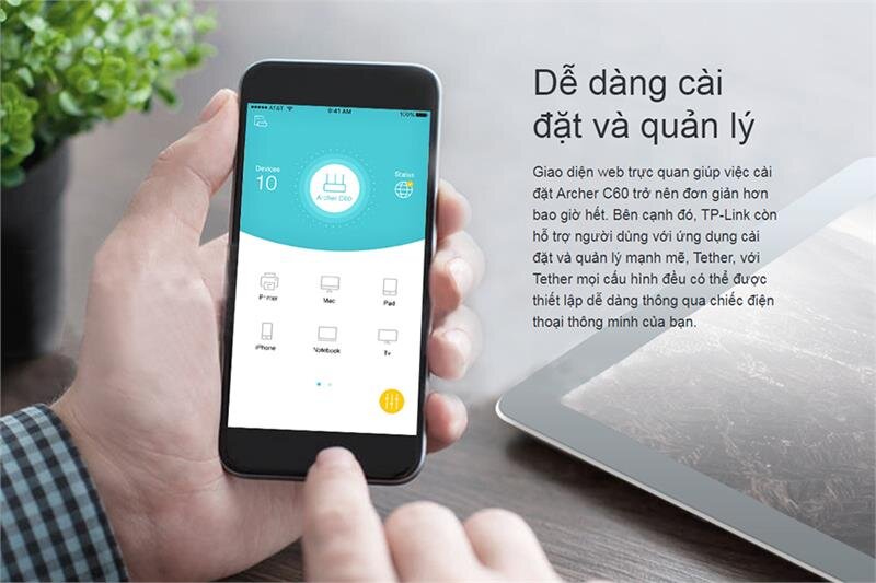 Giao diện web trực quan giúp việc cài đặt Archer C60 trở nên đơn giản hơn bao giờ hết. Bên cạnh đó, TP-Link còn hỗ trợ người dùng với ứng dụng cài đặt và quản lý mạnh mẽ, Tether, với Tether mọi cấu hình đều có thể được thiết lập dễ dàng thông qua chiếc điện thoại thông minh của bạn.