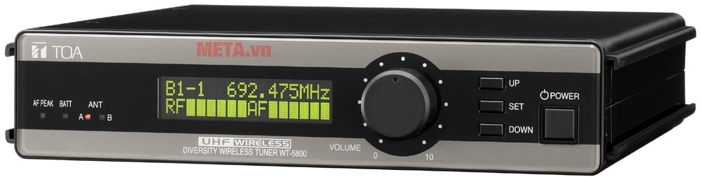 Khối thu không dây TOA WT-5805 mang màu xám đen pha màu bạc, phù hợp với bất cứ không gian sinh hoạt, vui chơi nào. Màn hình LCD màu hiển thị tần số RF, AF và số kênh, giúp bạn dễ dàng sử dụng.