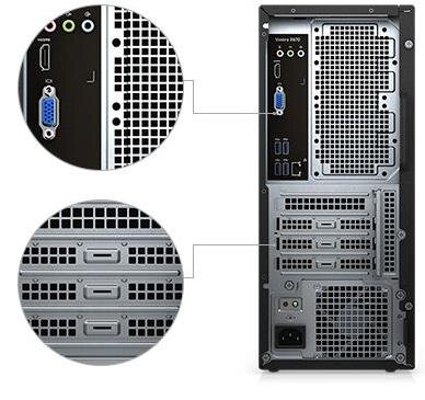Yếu tố làm mát: Thiết kế lưới độc đáo ở mặt trước của hệ thống kết hợp các lỗ thông hơi bổ sung, để giảm bụi, làm mát nhanh hơn và cải thiện hiệu suất tổng thể. Tùy chọn màu sắc khác nhau tùy theo khu vực. Tiết kiệm không gian: Với một dấu chân nhỏ, tháp Vostro để lại nhiều không gian bàn làm việc trong khi vẫn giữ các cổng trong tầm tay dễ dàng.