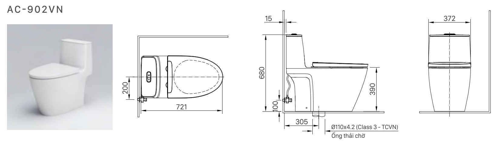 Thông tin sản phẩm bồn cầu 1 khối nắp điện tử INAX AC-902+CW-KA22AVN