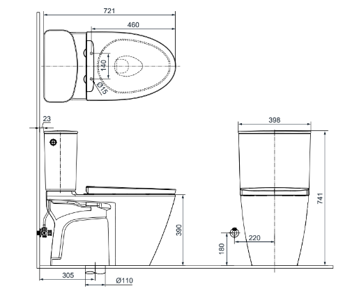 - Tâm thoát bồn cầu: 300mm (+-5)