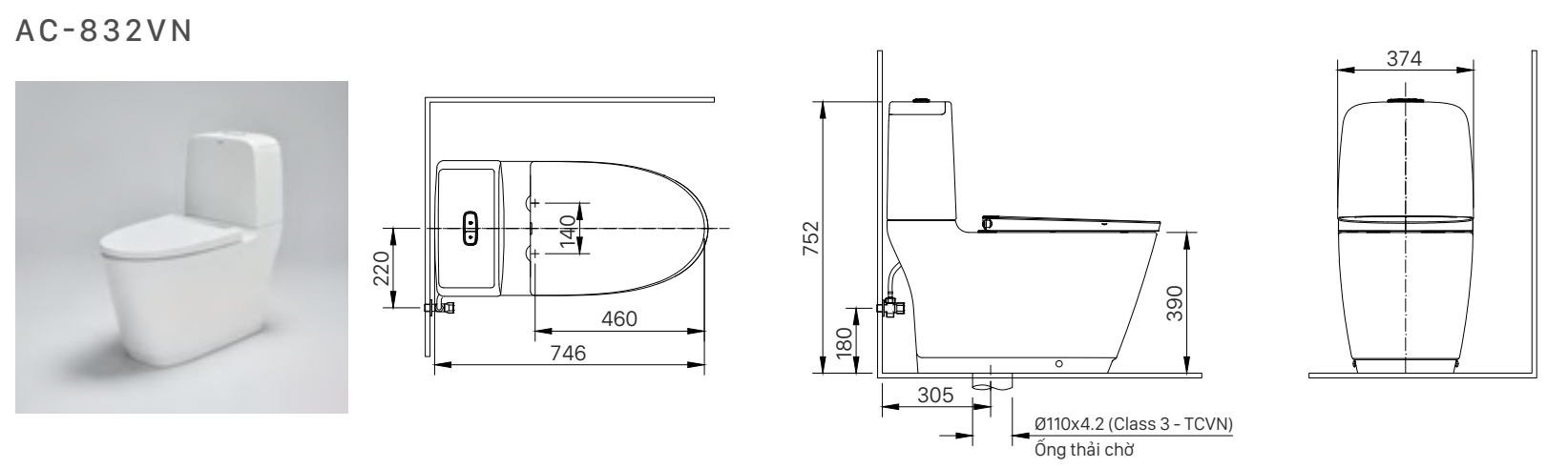 - AC-832 sở hữu vẻ ngoài ấn tượng bởi đường nét uốn cong các góc cạnh, tạo sự thanh thoát cho không gian.Phần thân cầu & két nước liền nhau tạo sự tinh tế hơn.