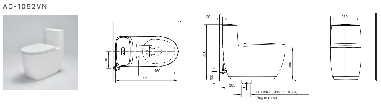 - Xả nhấn 2 mức xả đại & xả tiểu 4.5L/3L siêu tiết kiệm nước
