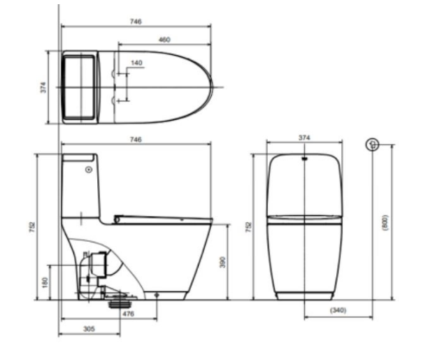 Bản vẽ kỹ thuật của bàn cầu INAX 2 khối ACT-832VN
