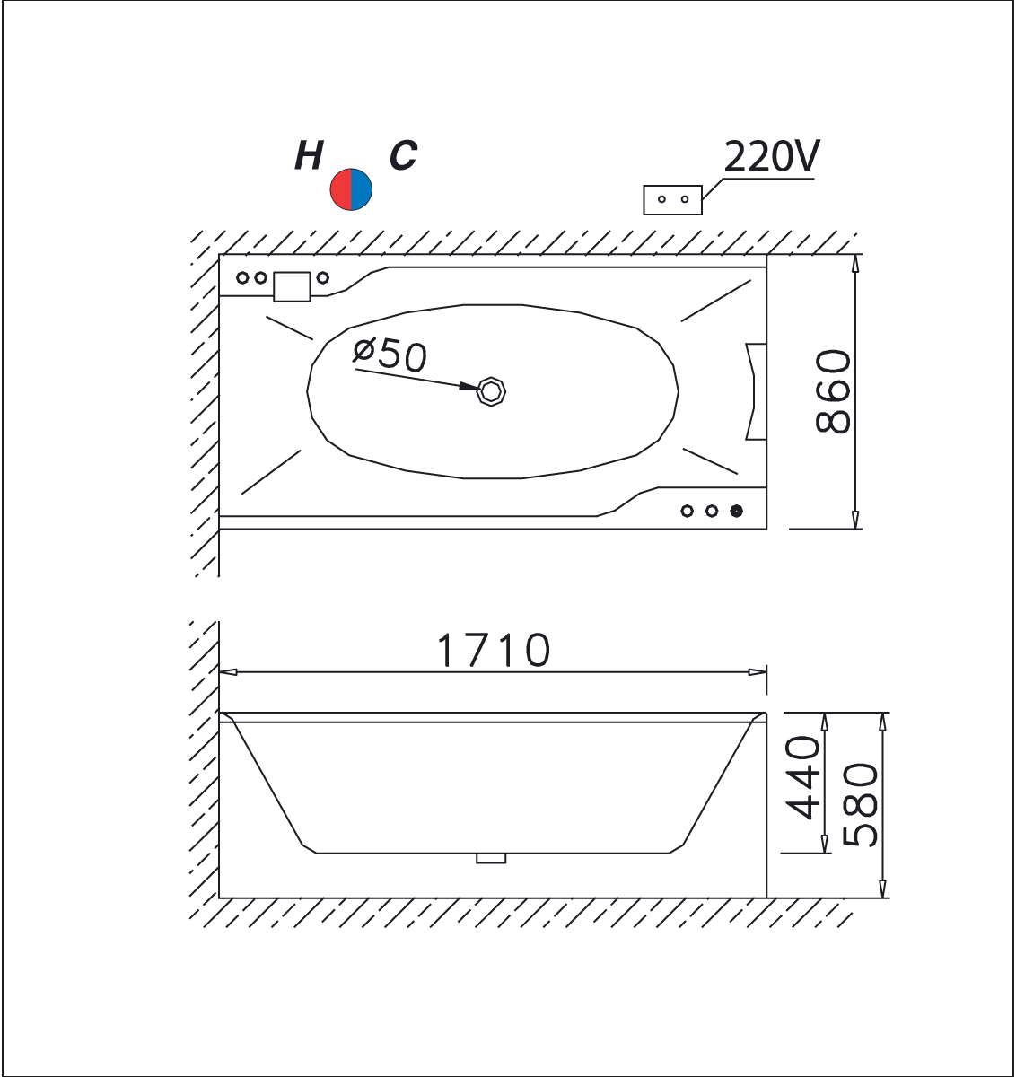 Bản Vẽ Kỹ Thuật Bồn Tắm Massage Caesar Hơi Chân Yếm MT3370LS/RS