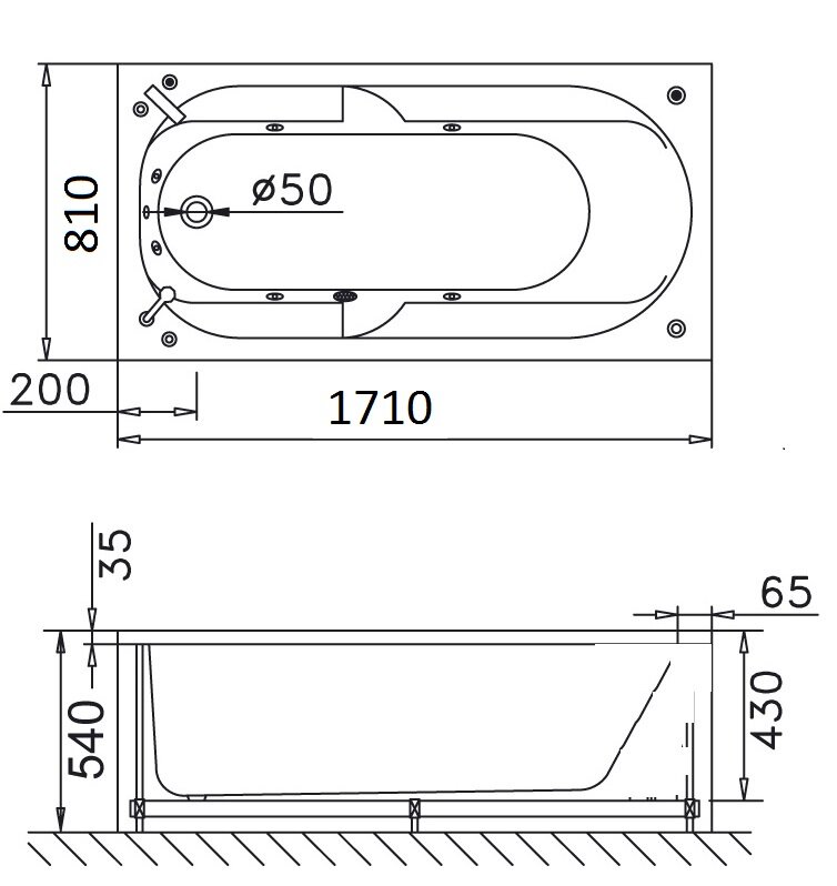 Bản Vẽ Kỹ Thuật Bồn Tắm Massage Caesar MT0370L/R
