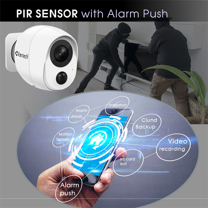 Đầu tiên, Camera Vantech VP-B7300PIR là loại camera có tính di động cao với dạng bullet nhỏ gọn, được thiết kế với chân đế có nam châm, dễ dàng lắp đặt và định vị camera theo vị trí muốn quan sát. Thiết bị có thể sử dụng nguồn điện từ pin sạc có thời lượng pin dài, chế độ chờ lên tới 365 ngày. Thiết bị hoạt động tiết kiệm pin tối đa, chỉ quay video khi có phát hiện chuyển động. Như vậy, bạn không cần mệt mỏi với các lỗ khoan hay hệ thống dây điện phức tạp nữa.