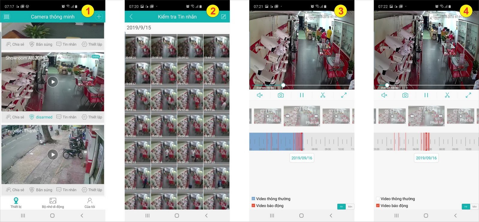 Màn hình số (3): Xem lại tất cả video, có đánh dấu đoạn video có chuyển động.