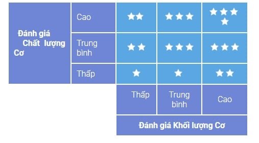 Cân bằng giữa Khối lượng Cơ và Chất lượng Cơ (càng nhiều trạng thái "sao" nghĩa là cơ càng tốt):