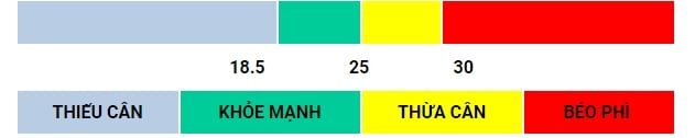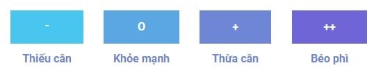 [ - ] : Gầy; lượng mỡ dưới ngưỡng khỏe mạnh. Gia tăng nguy cơ dẫn tới các vấn đề sức khỏe.