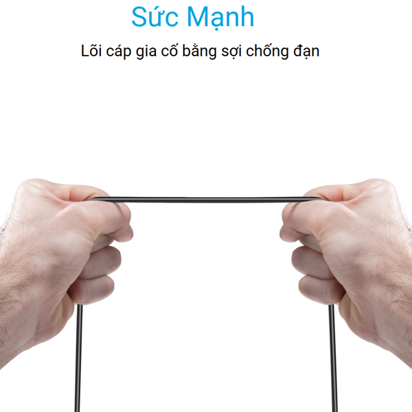 Cực kỳ bền Chúng tôi đã thử nghiệm bằng cách bẻ cong đầu cáp hơn 5000 lần , nhưng chất lượng cáp không thay đổi. Không cho thấy hư hỏng, hay bất cứ ảnh hưởng nào đến chất lượng của Cáp. Đây là thử nghiệm khó khăn nhất mà chúng tôi từng thấy. Lấy vật liệu sản xuất áo giáp chống đạn ra làm cáp Mỗi sợi cáp được gia cố bằng sợi tổng hợp aramid. Đây là vật liệu chủ yếu để sản xuất áo giáp chống đạn. Đảm bảo sự bền bỉ trong thời gian dài.
