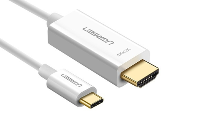 Thông tin sản phẩm : Cáp  chuyển đổi USB-C sang HDMI hỗ trợ 4K, 3D- Ugreen 30841 Hãng sản xuất : Ugreen Mã sản phẩm : 30841 Giao diện đầu vào: USB Type C Giao diện đầu ra : HDMI Hỗ trợ đầu ra video: 3840x2160 4Kx2K, 3D Hệ điều hành tương thích: Mac OS, Linux Windows XP / Vista / 7/8/10 và trên;  Sản phẩm không cần cấp nguồn , không cần cài đặt , chỉ cắm là hoạt động được ngay. Chiều dài cáp : 1,5m