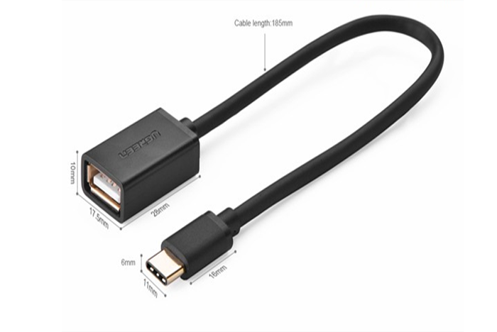 Thông tin cáp usb 2.0 chuyển đổi từ chuẩn C sang usb chuẩn A cổng âm - Ugreen 30175 1. Kết nối: USB 2.0 Loại A x1; Reversible Loại USB C; 2. Hỗ trợ truyền dữ liệu lên đến 480Mbps spped; Cáp đầu mạ Vàng 24k 3. Cáp OTG USB Type C Kết nối ổ đĩa flash, bàn phím, chuột, hoặc các tiêu chuẩn USB-A thiết bị của bạn với một thiết bị USB-C kích hoạt, giống như mới nhất của Apple MacBook mới 12, Google Chromebook vv .; 4. Hỗ trợ USB Type-C hiện nay lên đến 5V / 3A; 5. Plug and Play, không có trình điều khiển cần thiết; 6. Dây cáp oxy tự dẫn bằng đồng, chống ăn mòn, mạ vàng nối và lá & braid che chắn cung cấp dẫn tối đa và giảm thiểu mất mát dữ liệu; 7. Chiều dài: 15cm.