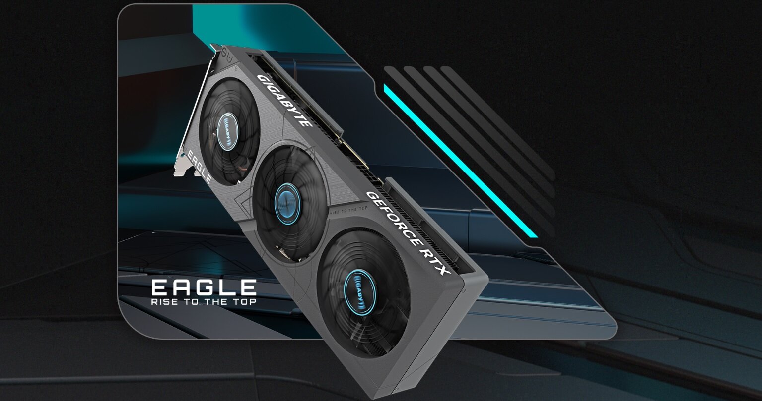 Card đồ họa dựa trên kiến trúc NVIDIA Ada Lovelace của Gigabyte mang lại hiệu năng và hiệu quả. Tất cả những điều này được thực hiện nhờ hệ thống làm mát hiệu suất cao, độc quyền với ba quạt (WINDFORCE 3X), bộ tản nhiệt bằng nhôm và ống dẫn nhiệt bằng đồng. Tất nhiên, không quên tấm ốp kim loại ở mặt sau của PCB của Gigabyte GeForce RTX 4060 Ti EAGLE OC 8G.