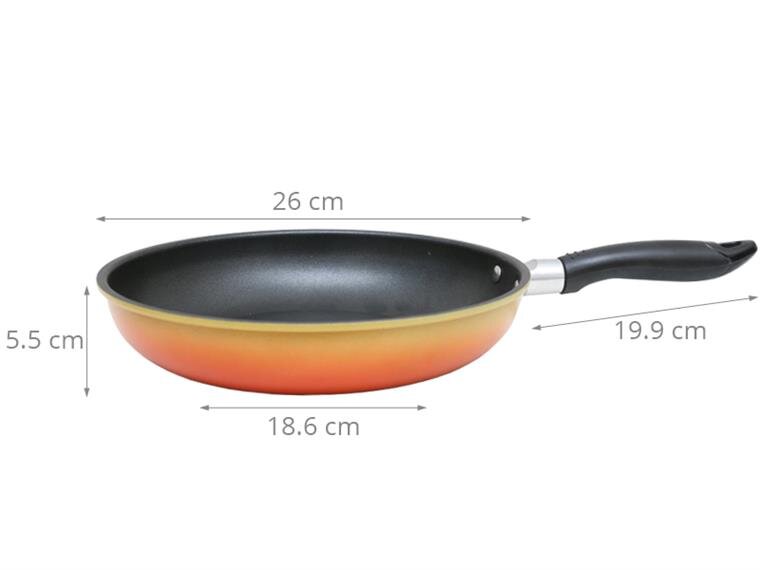 Lòng chảo rộng Chảo chống dính có đường kính 26 cm thích hợp cho việc chiên xào cho gia đình 3 - 4 người, chiên cá nguyên con khoảng 1 kg dễ dàng và đẹp mắt.