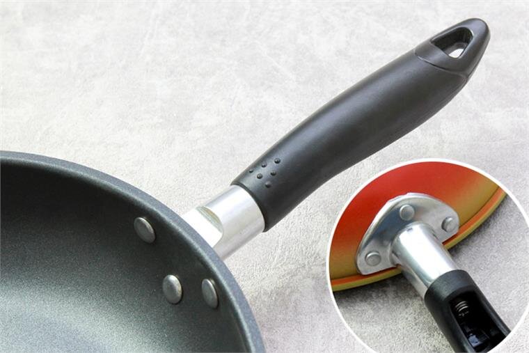 Thiết kế chắc chắn Tay cầm chảo rán chống dính bằng nhựa cao cấp, chịu nóng tốt, độ bền cao, được vít chắc chắn vào thân chảo. Thiết kế có sẵn móc treo để cất giữ.